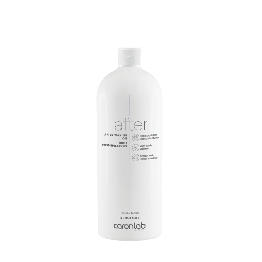 After – After Waxing Oil uses Tea Tree Oil to remove Wax residue as well as soothe & condition the skin.