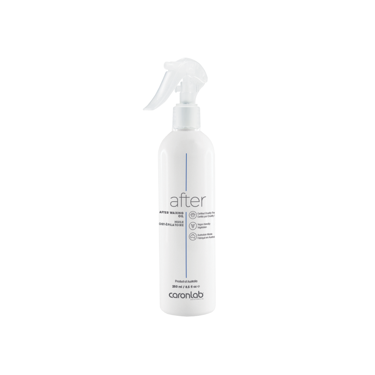 After – After Waxing Oil uses Tea Tree Oil to remove Wax residue as well as soothe & condition the skin.